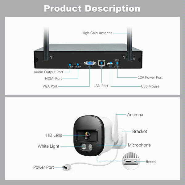 SriHome 5MP 4CH WiFi NVR System with 4 Wireless Cameras (US Plug)