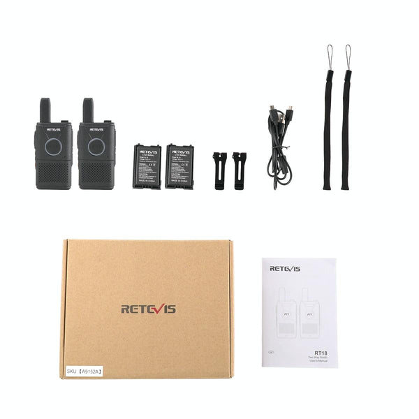 1 Pair RETEVIS RT18 PMR446 16CHS Dual PTT Handheld Walkie Talkie, EU Plug(Black)