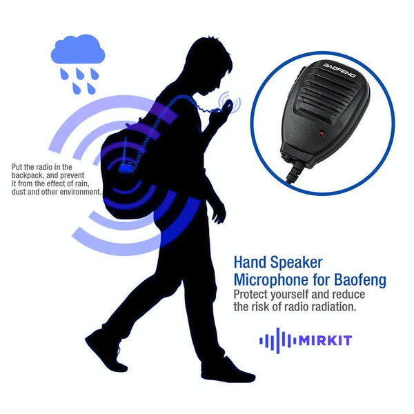 Baofeng Clip-on Speaker Microphone for Walkie Talkies, 3.5mm + 2.5mm Earphone + Mic Plug(Black)