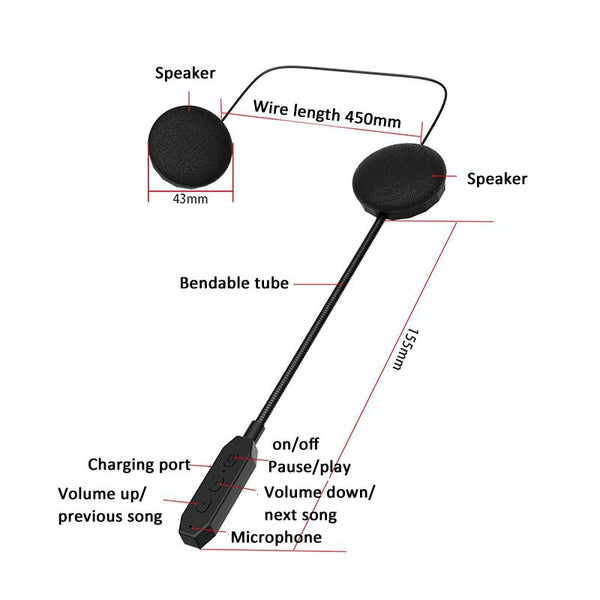 1. Universal Bluetooth headset for helmets, automatic answering, hands-free, waterproof body