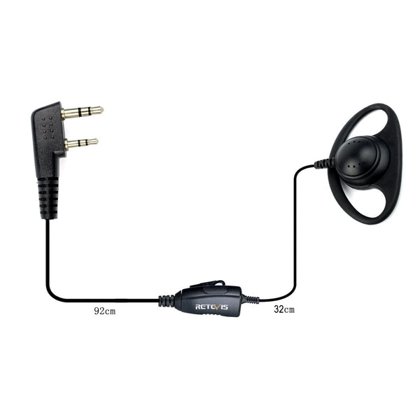 RETEVIS K-316 2 Pin D Shape Soft Ear Hook Earphone Microphone for H-777/RT-5R/RT1/RT2/RT5 /888s/UV5R
