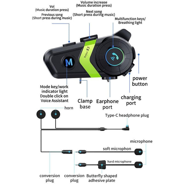 9. With 2-in-1 soft and hard mike double mike cable, suitable for full helmets, cross-country helmets, rally helmets, winter half-helmets, uncovered helmets, retro helmets
