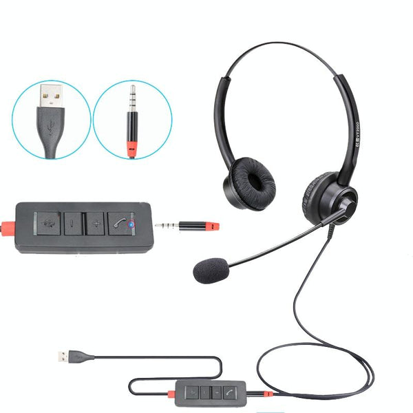VT200D Double Ears Telephone Headset Operator Headset With Mic,Spec: 3.5mm Single Plug To USB