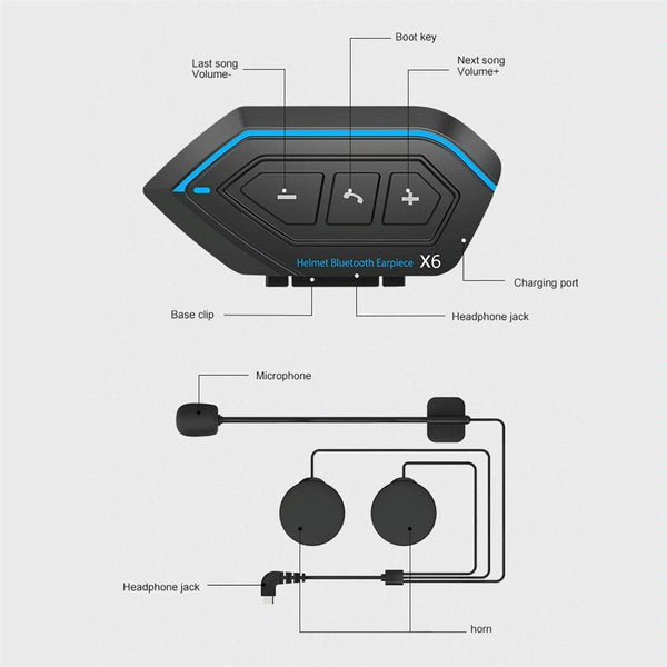 X6 Helmet Bluetooth Headset Wireless Waterproof Moto Handsfree Stereo Headphone(Soft Line Wheat)