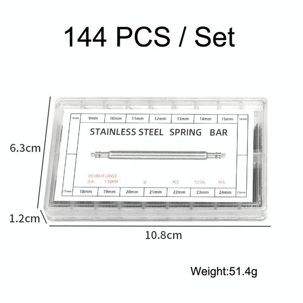 144 PCS / Set 8-25mm Strap Connecting Shaft Stainless Steel Watch Spring Bar