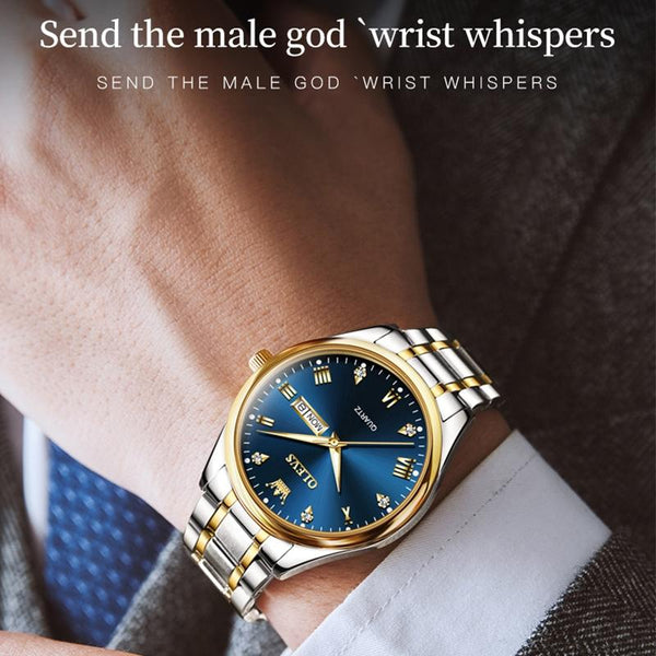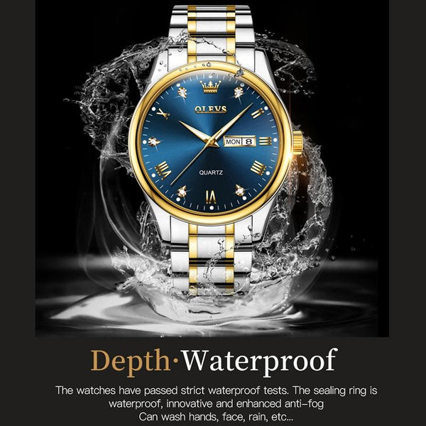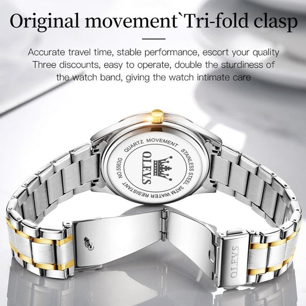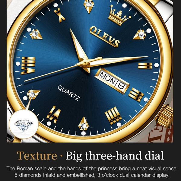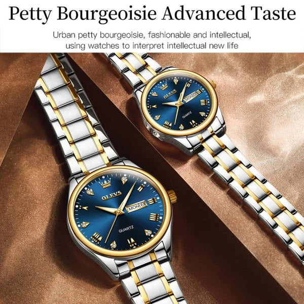 1pair OLEVS 5563 Couple Luminous Waterproof Quartz Watch(Blue + Gold)