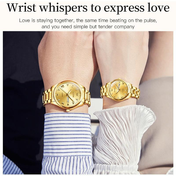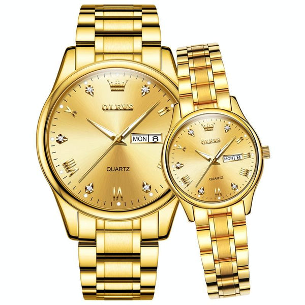 1pair OLEVS 5563 Couple Luminous Waterproof Quartz Watch(Gold)