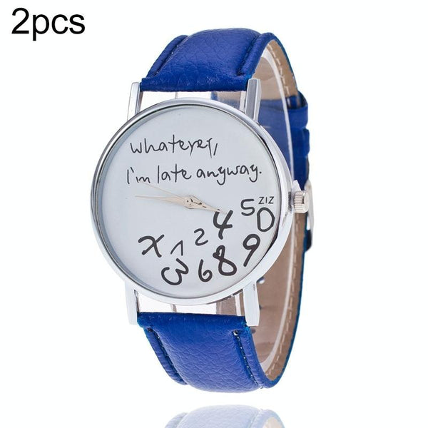 2 PCS Alphabet Number Pattern Leather Strap Watch(Blue)