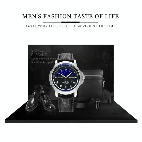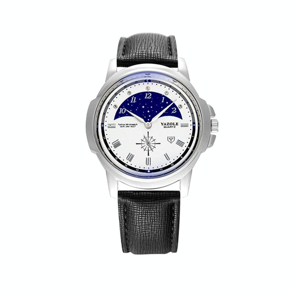 407 YAZOLE Men Fashion Business Leather Band Quartz Wrist Watch(Black + White)