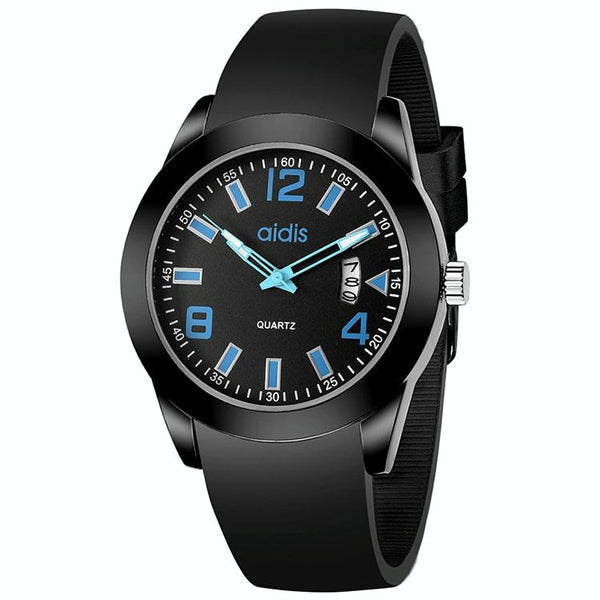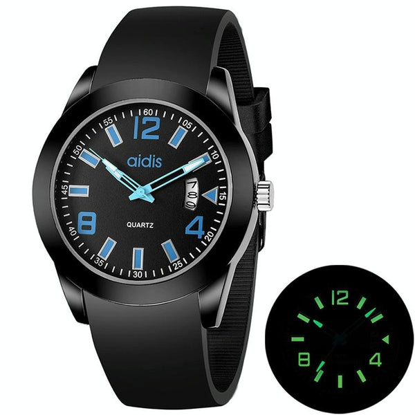 addies MY-1601 Luminous Version Silicone Watchstrap Quartz Watch, Support Calendar, Size:L(Blue)