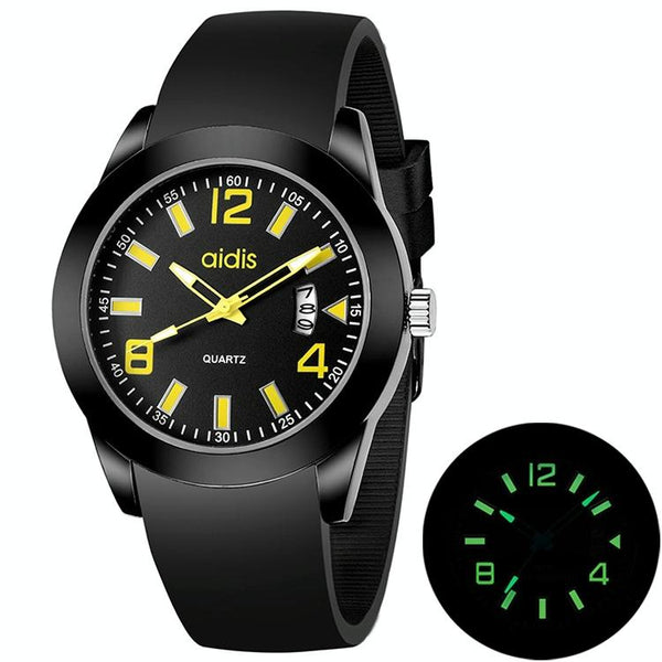 addies MY-1601 Luminous Version Silicone Watchstrap Quartz Watch, Support Calendar, Size:L(Yellow)