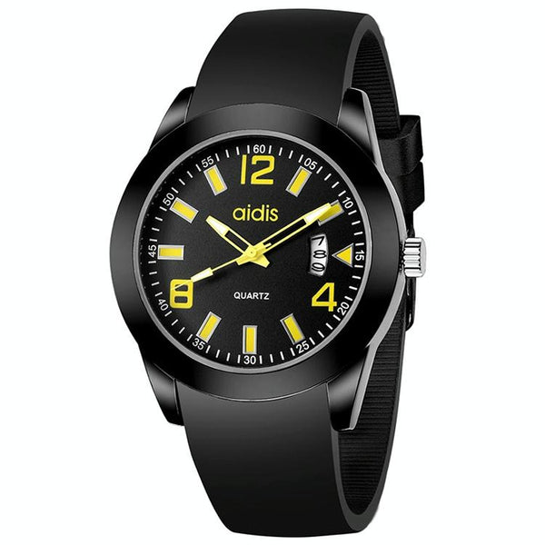 addies MY-1601 Regular Version Silicone Watchstrap Quartz Watch, Support Calendar, Size:L (Yellow)