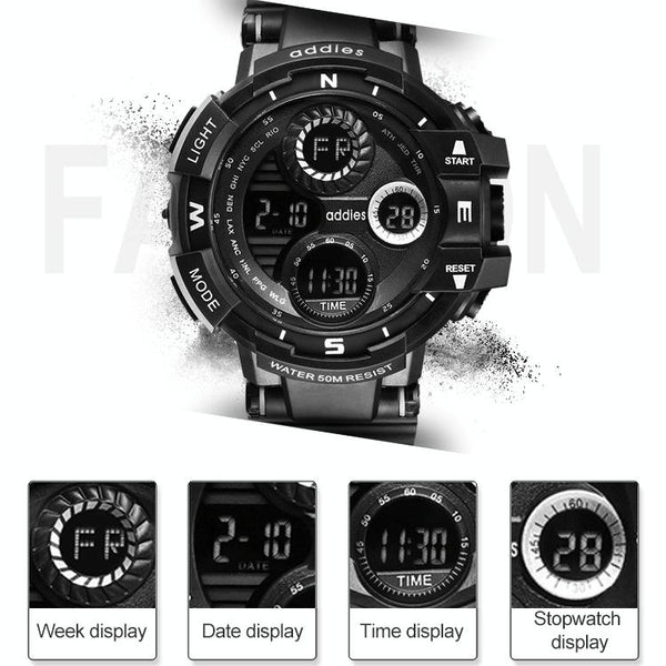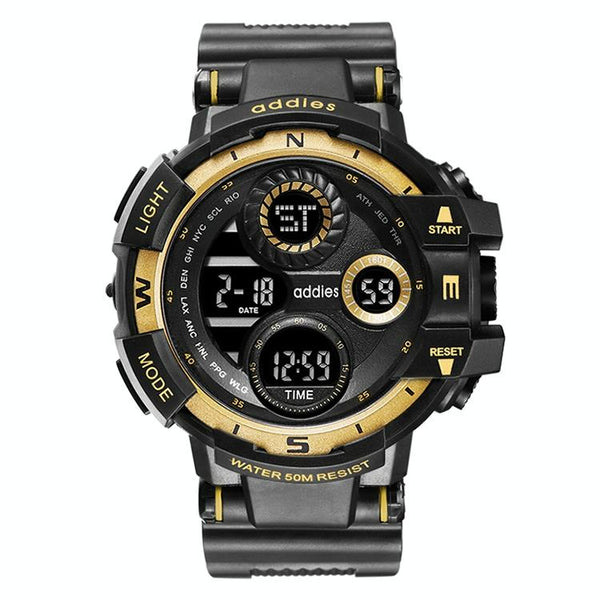 addies MY-1901 Luminous Three-window LED Outdoor Sports Multi-function Electronic Watch for Men, Support Calendar / Alarm Clock / Timer / Talking(Gold)