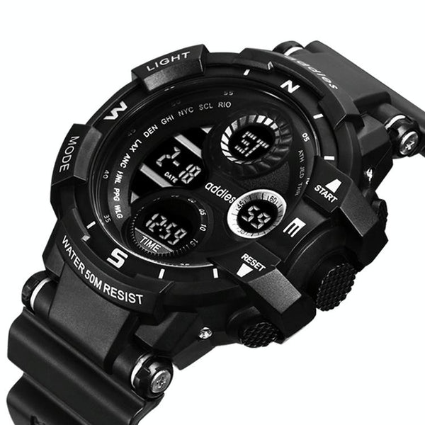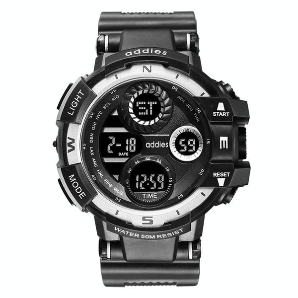 addies MY-1901 Luminous Three-window LED Outdoor Sports Multi-function Electronic Watch for Men, Support Calendar / Alarm Clock / Timer / Talking(White)