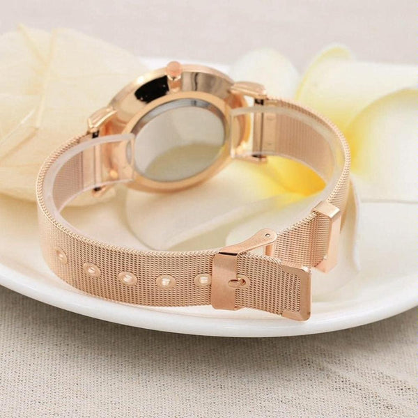 Arabic Digital Stainless Steel Mesh Strap Watch for Men / Women(Rose Gold)