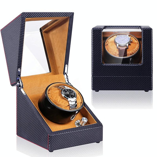 Automatic Watch Shaker Electric Rotating Winding Watch Gift Box, US Plug(Carbon Fiber Camel Ripple)