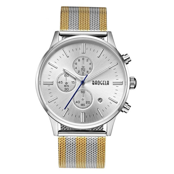 BAOGELA 1611 Small Three-pin Luminous Chronograph Calendar Quartz Watch For Men(Gold Between Silver and White)
