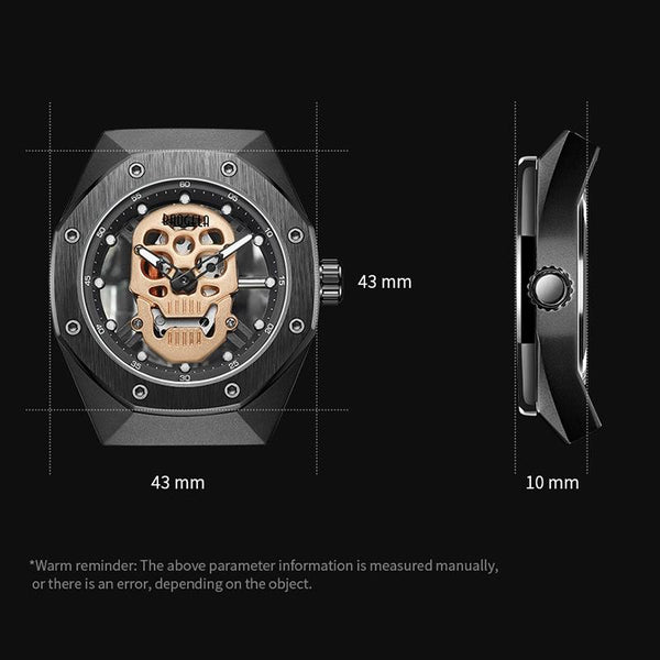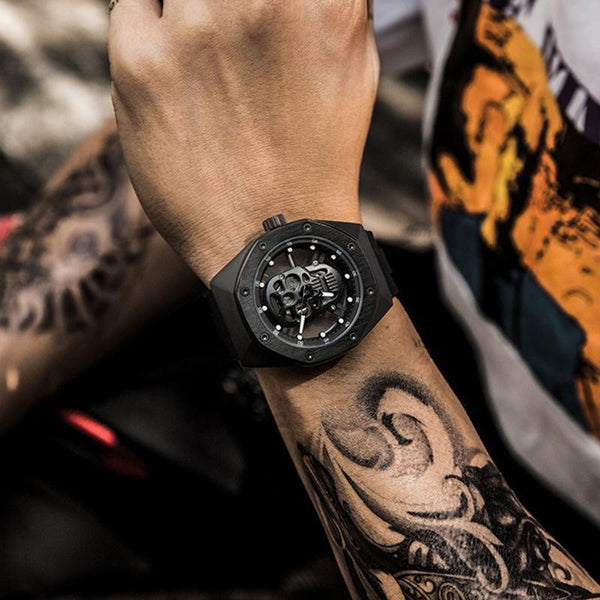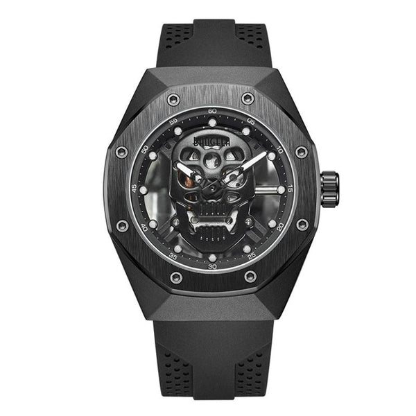 BAOGELA 1902 Skull Luminous Dial Silicone Strap Quartz Watch For Men(Black)