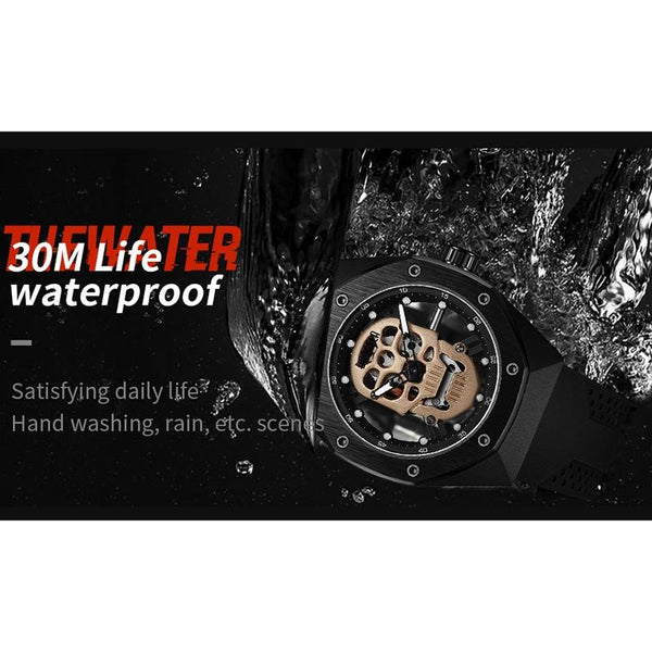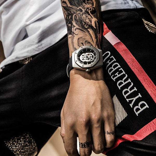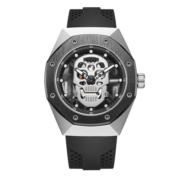 BAOGELA 1902 Skull Luminous Dial Silicone Strap Quartz Watch For Men(Black Silver)