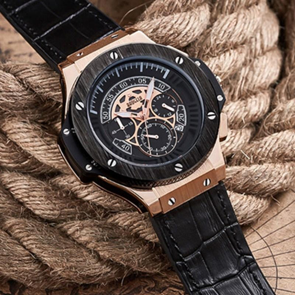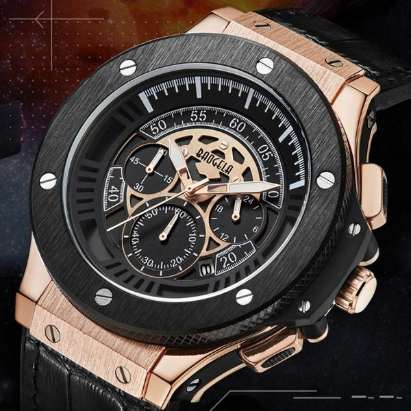 BAOGELA 1910 Multifunction Watch Outdoor Sports Calendar Quartz Mens Watch(Rose Gold Shell)