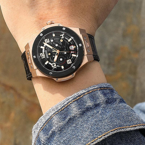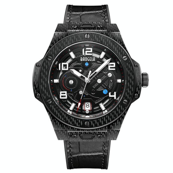 BAOGELA 2001 Luminous Calendar Leather Strap Mechanical Watch For Men(Black)