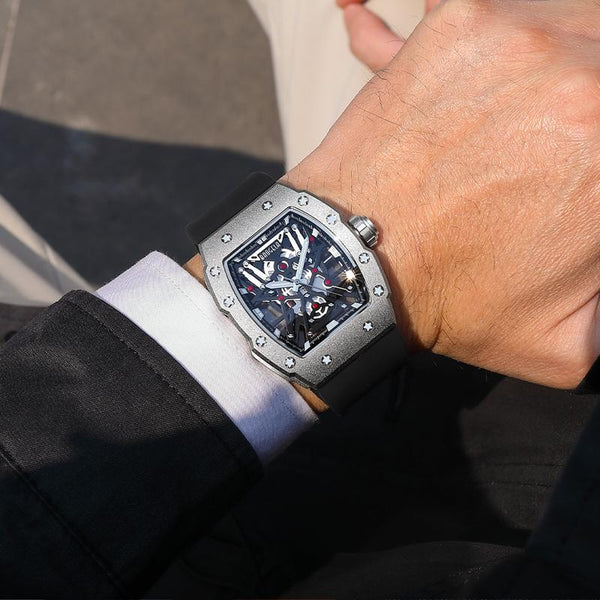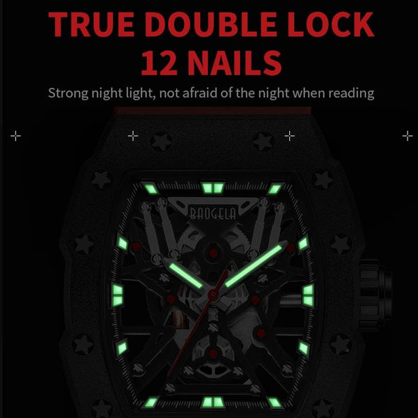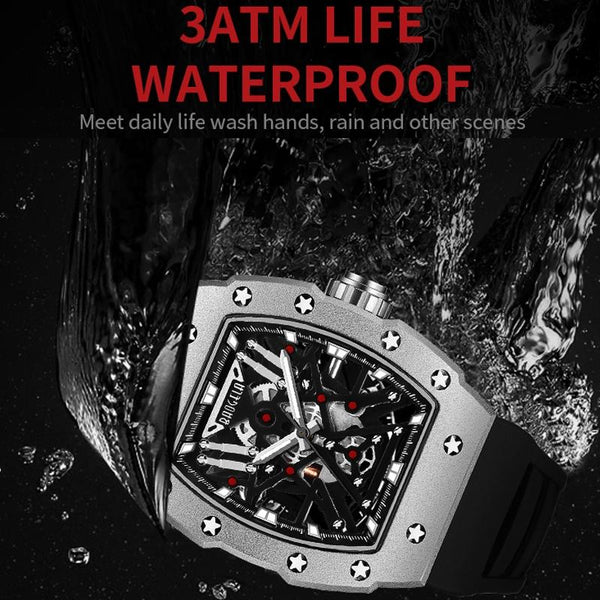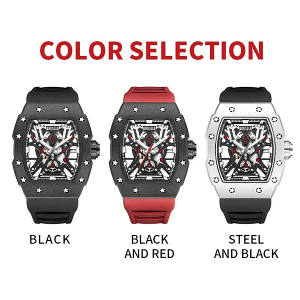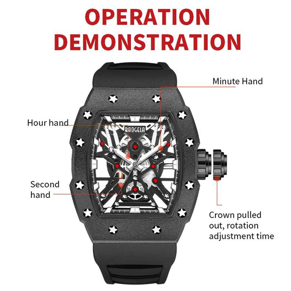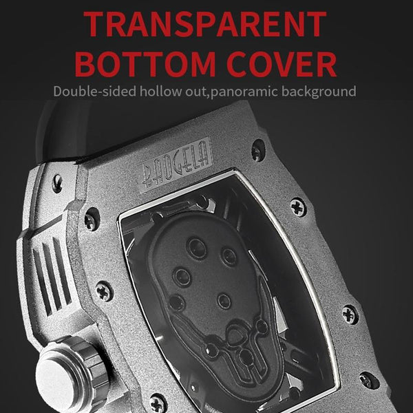 BAOGELA 224147 Wine Barrel Shaped Hollow Night Light Waterproof Sports Silicone Men Watch(Black Shell Black Belt)