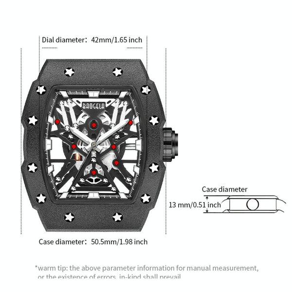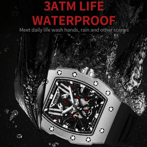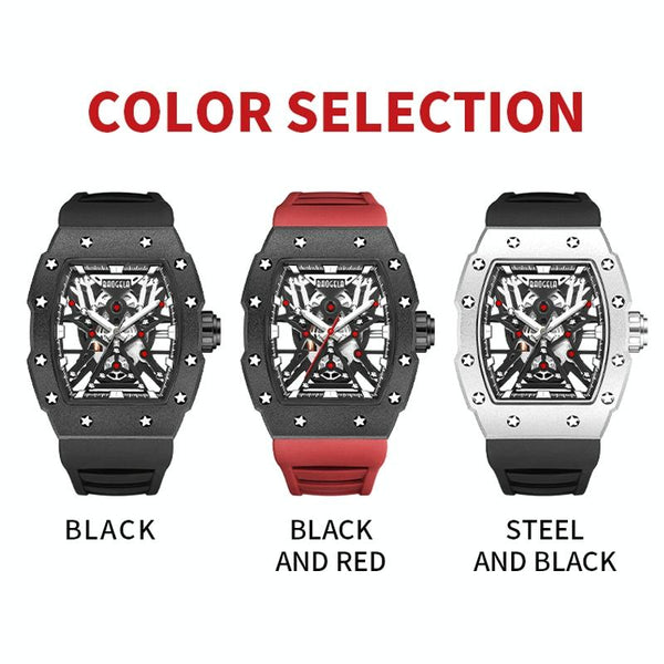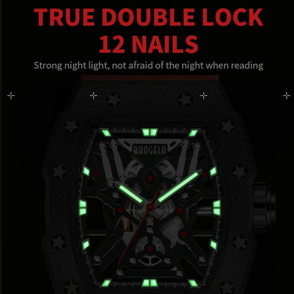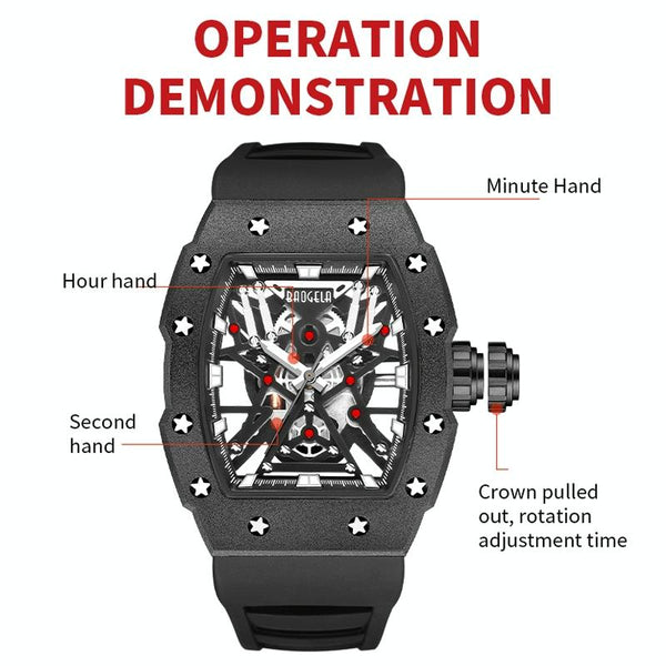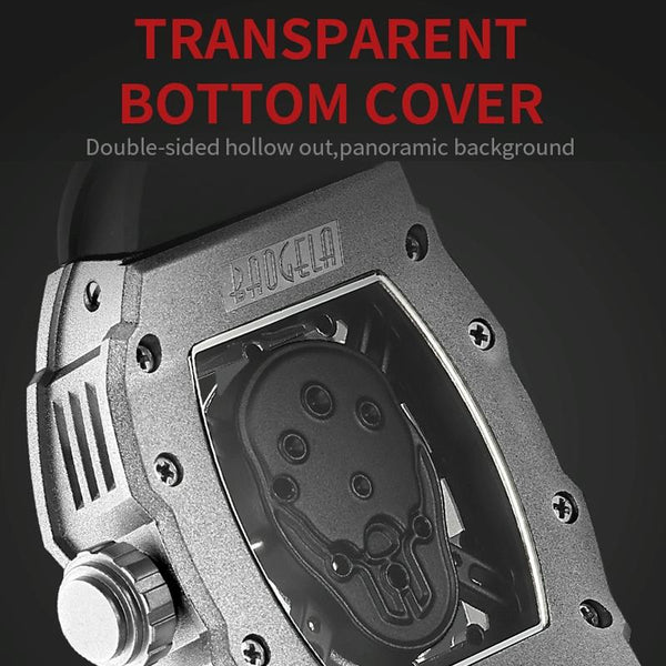BAOGELA 224147 Wine Barrel Shaped Hollow Night Light Waterproof Sports Silicone Men Watch(Black Shell Red Belt)