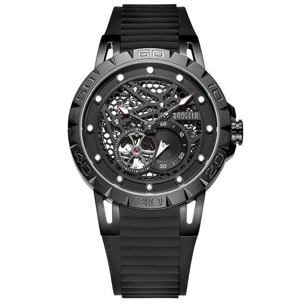 BAOGELA 6772G Round Dial Silicone Strap Luminous Clock Mechanical Watch For Men(Black Shell Black Surface Black Belt)
