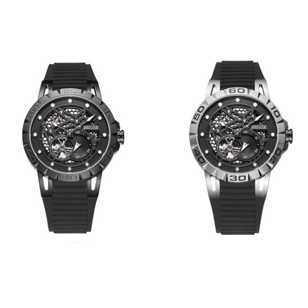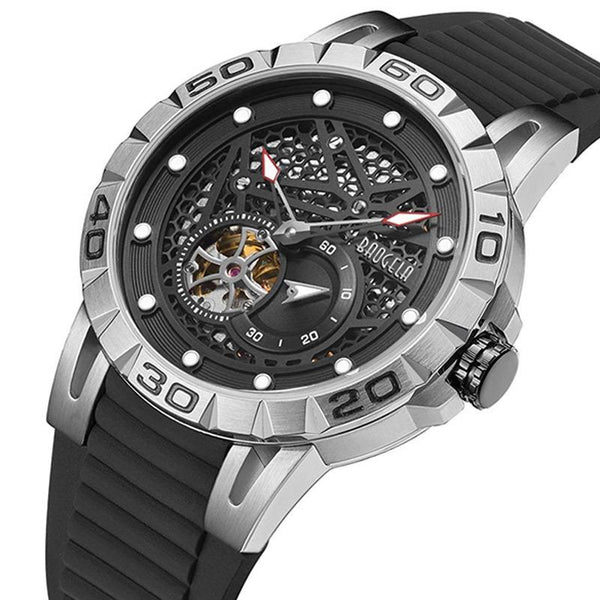 BAOGELA 6772G Round Dial Silicone Strap Luminous Clock Mechanical Watch For Men(Gun Shell Black Surface Black Belt)