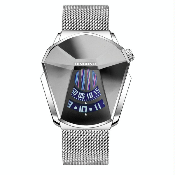 BINBOND 01 Men Locomotive Concept Diamond Dial Quartz Watch(White Mash White Steel White Surface)