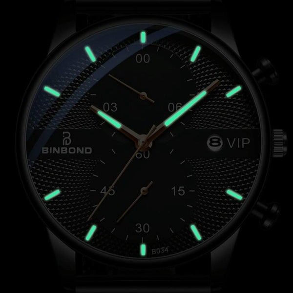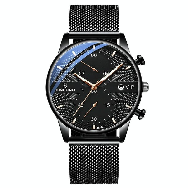 BINBOND B0158 Men Luminous Multifunctional Business Quartz Watch(Black Mash Black Shell Black Surface)