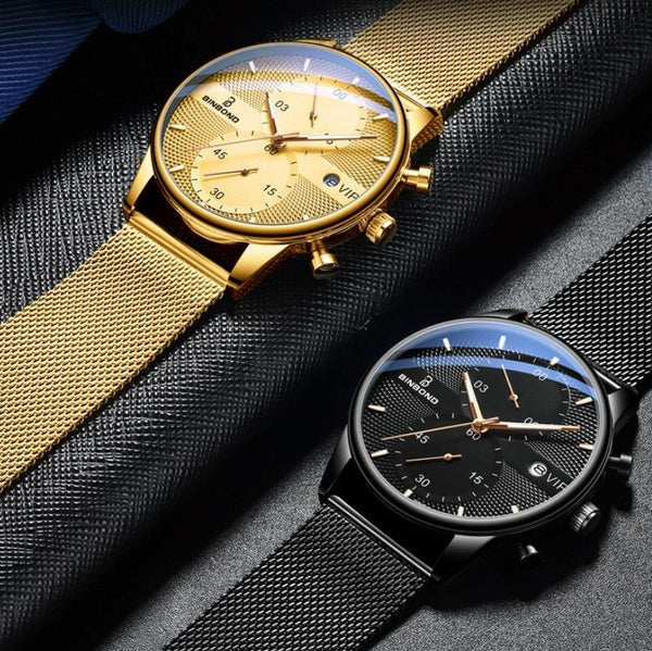 BINBOND B0158 Men Luminous Multifunctional Business Quartz Watch(Blue Mash Rose Shell Blue Surface)