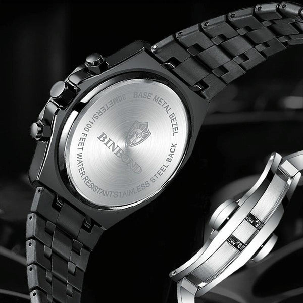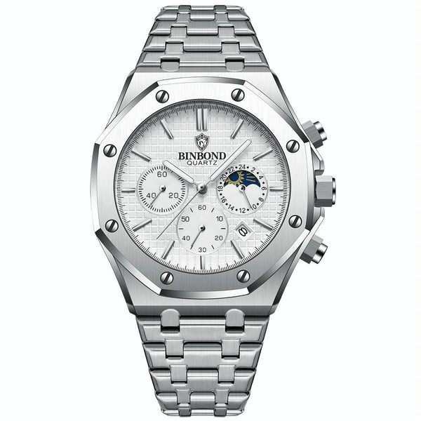BINBOND B0161 Multifunctional Luminous Waterproof Business Quartz Watch, Color: White Steel-White