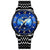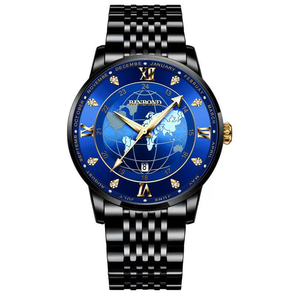 BINBOND B1117 30M Waterproof Earth Dial Butterfly Buckle Luminous Quartz Watch(Black Steel-Blue-Gold)