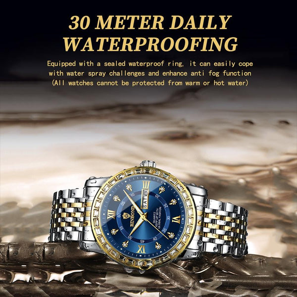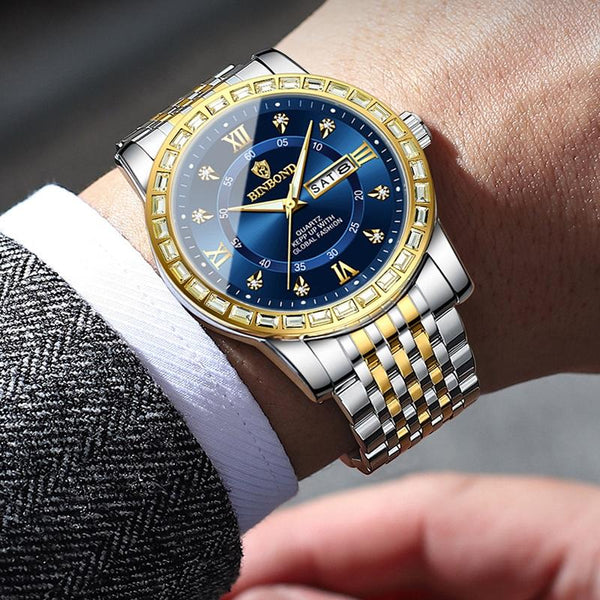 BINBOND B2202 Diamond Dual-calendar Luminous Quartz Watch, Color: Black Steel-Black-White Nail