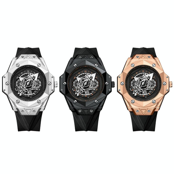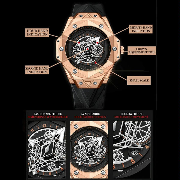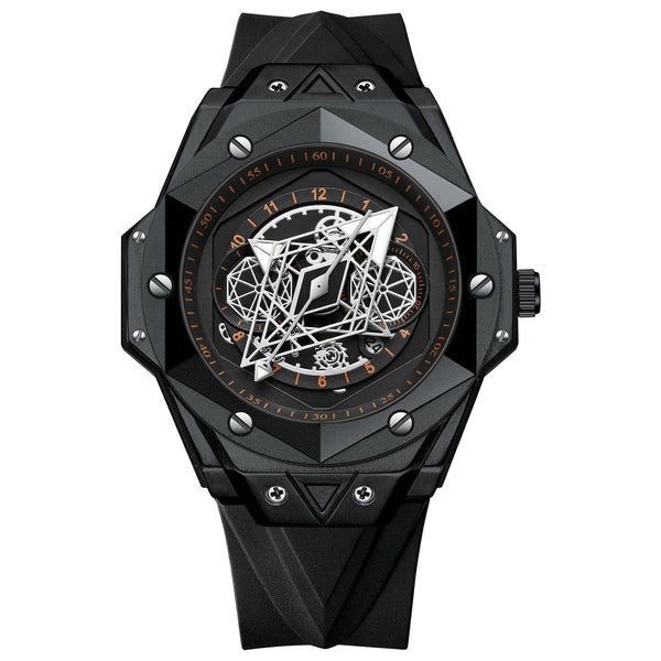 BINBOND B2266 Men Luminous Calendar Outdoor Waterproof Watches, Color: Black Leather-Black Steel