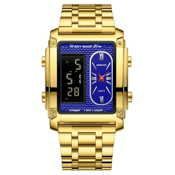 BINBOND B2311 30m Waterproof Men LED Luminous Multifunctional Quartz Watch, Color: Metal-Blue