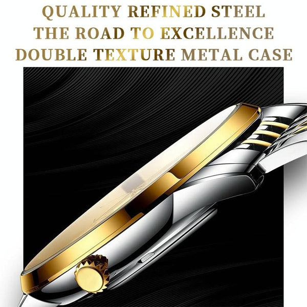BINBOND B3034 Diamond 30m Waterproof Business Watch Men's Butterfly Buckle Luminous Quartz Watch(Inter-gold-Black)