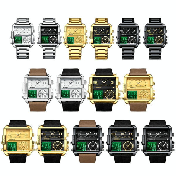 BINBOND B3332 Square Multifunctional Sports Quartz Waterproof Watch(Black Steel-Black-Gold)