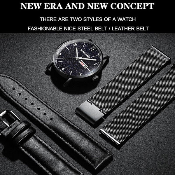 BINBOND B3820 30M Waterproof Ultra-thin Quartz Luminous Starry Watch, Color: Black Leather-Rose Gold-Black