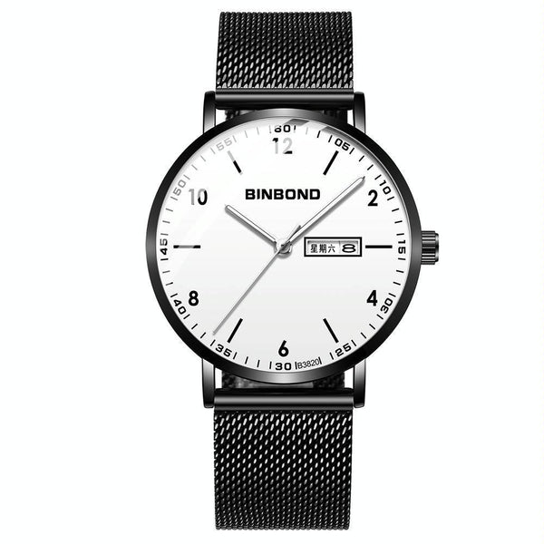 BINBOND B3820 30M Waterproof Ultra-thin Quartz Luminous Starry Watch, Color: Black Net-Black-White