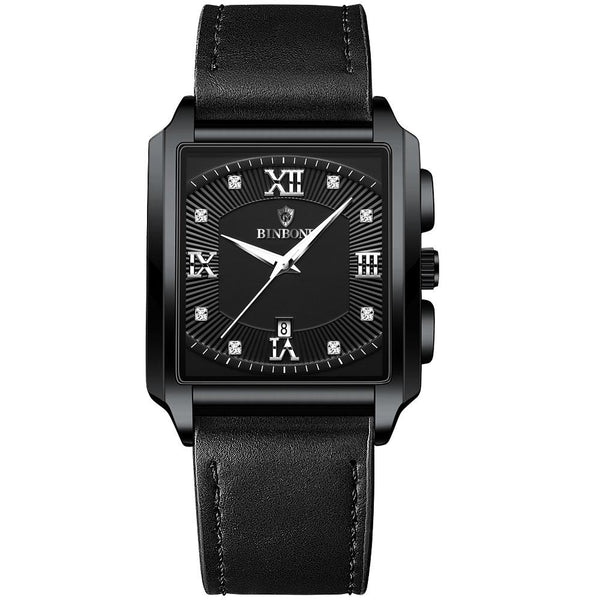 BINBOND B4143 Rectangular Outdoor Men Waterproof Quartz Watches(Black Leather-Black Steel-White)