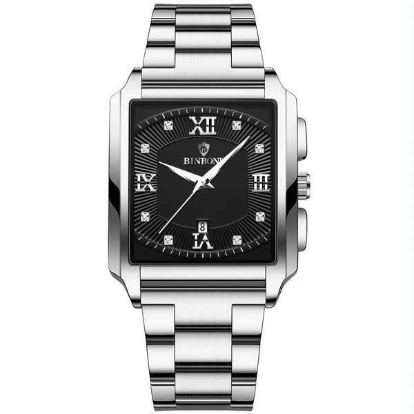 BINBOND B4143 Rectangular Outdoor Men Waterproof Quartz Watches(White Steel-Black)