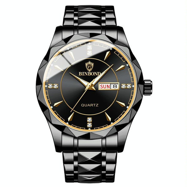 BINBOND B5552 Luminous Multifunctional Business Calendar Quartz Watch(Black Steel-Black-Gold)