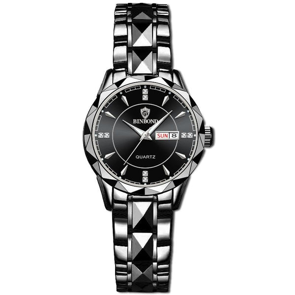 BINBOND B5552 Luminous Multifunctional Business Calendar Quartz Watch(Female-Black Steel-Black-White)