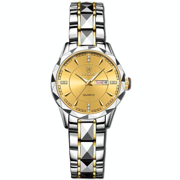 BINBOND B5552 Luminous Multifunctional Business Calendar Quartz Watch(Female-Inter-gold-Gold)