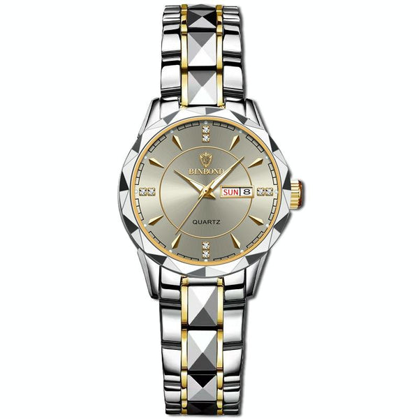BINBOND B5552 Luminous Multifunctional Business Calendar Quartz Watch(Female-Inter-gold-Gray)