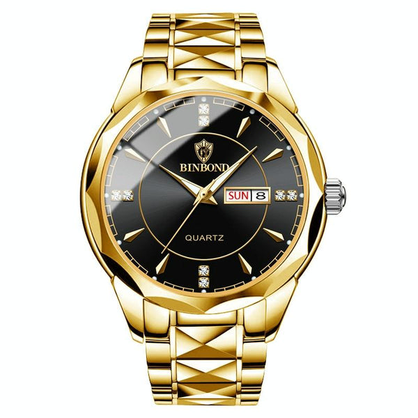 BINBOND B5552 Luminous Multifunctional Business Calendar Quartz Watch(Full-gold-Black)