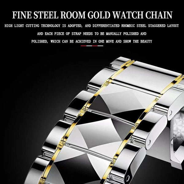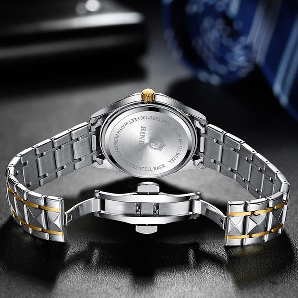 BINBOND B5552 Luminous Multifunctional Business Calendar Quartz Watch(Inter-gold-White)