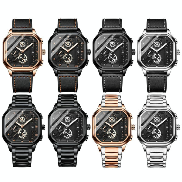 BINBOND B6577 30M Waterproof Luminous Square Quartz Watch, Color: Rose Gold-Black-Rose Gold